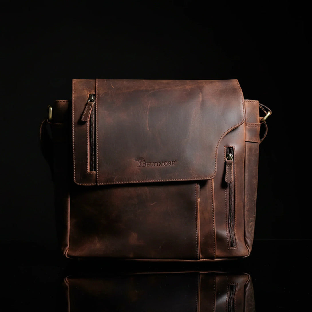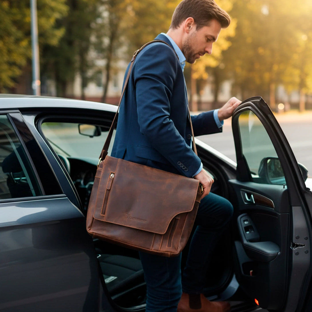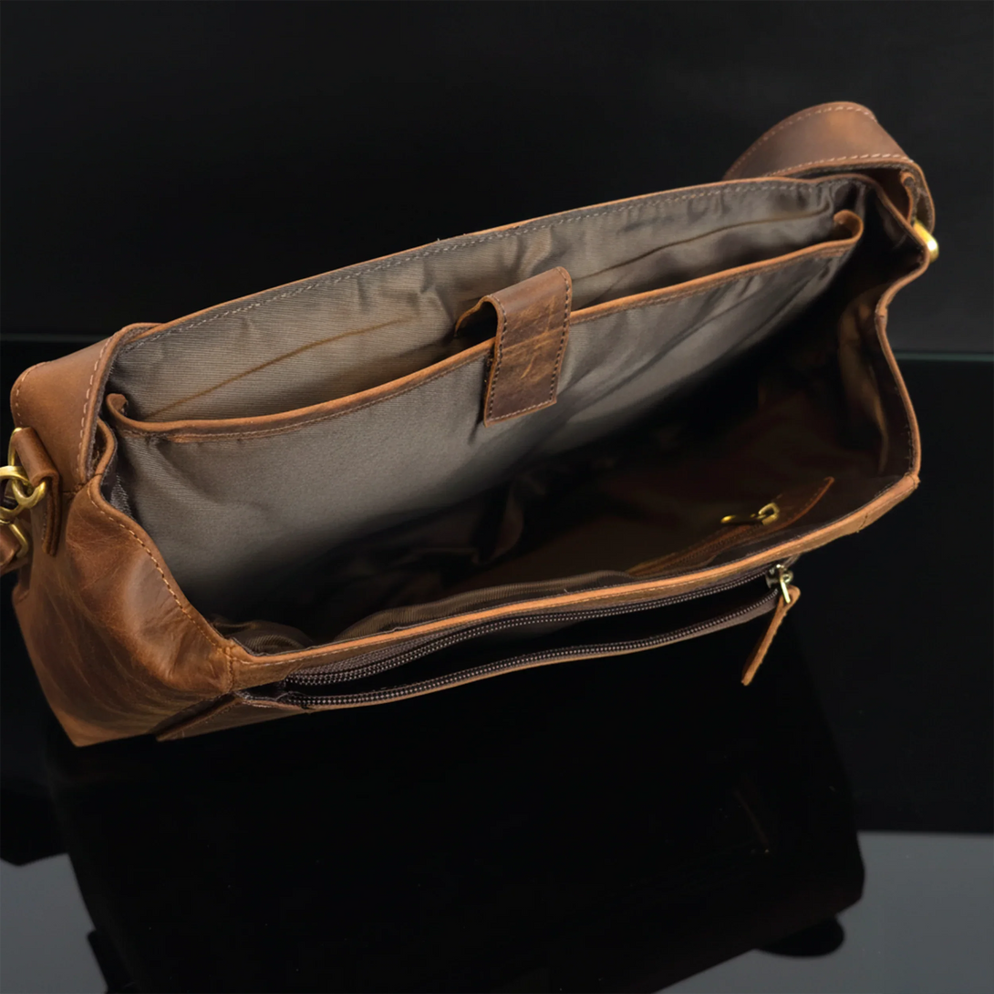 Gemaakt van premium nubuck echt leer in een elegante verouderde bruine tint, is deze exclusieve vintage-stijl tas ontworpen voor wie vakmanschap en functionaliteit waardeert.