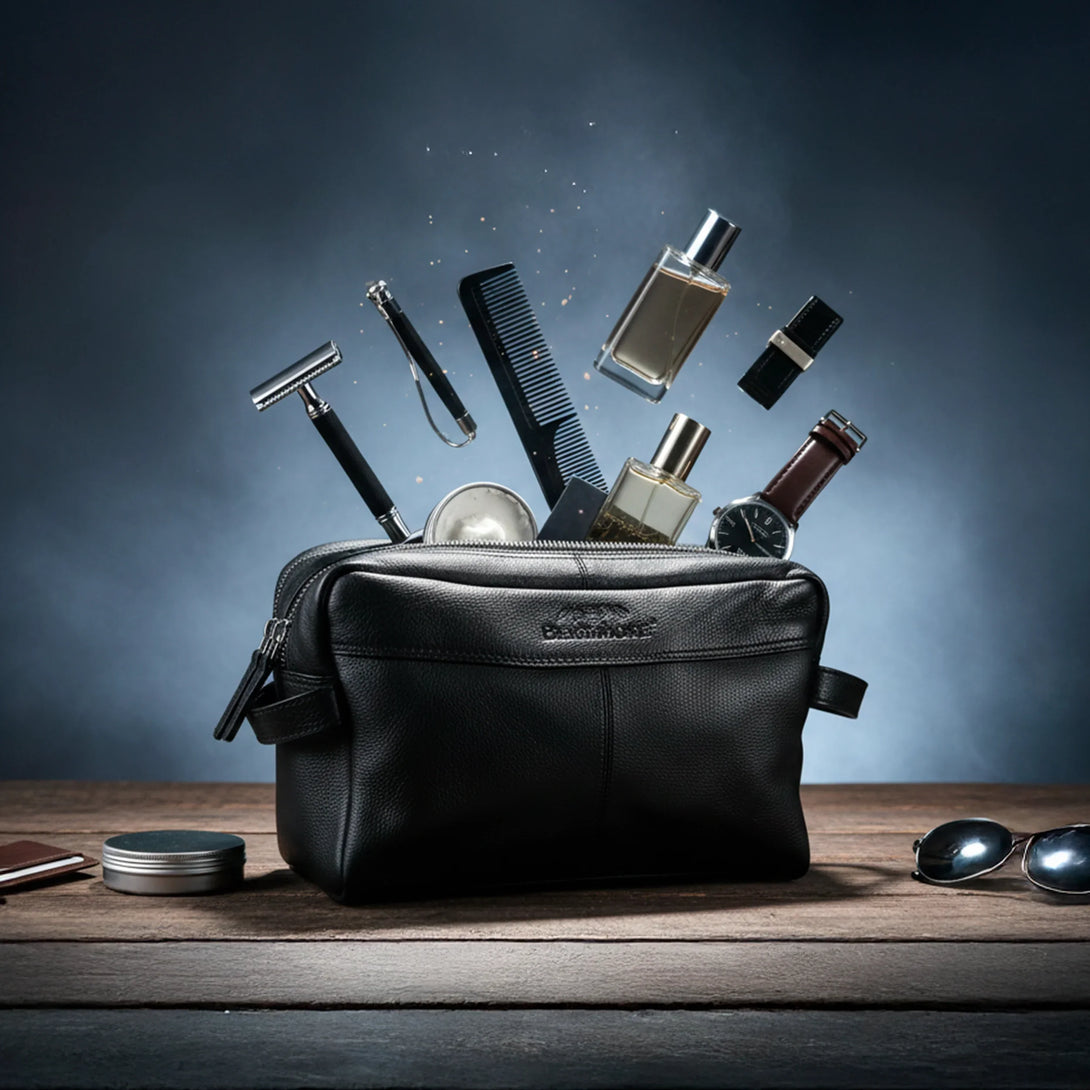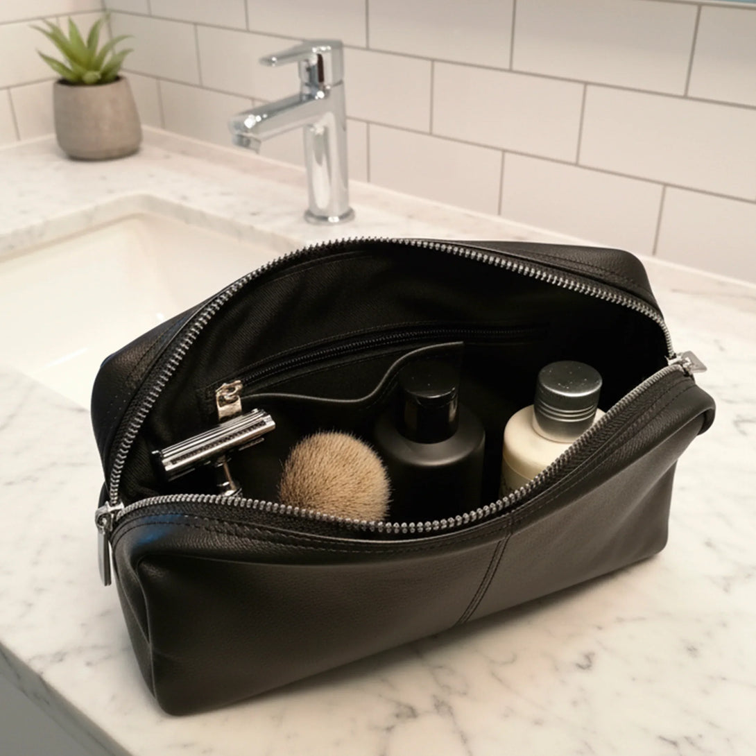 Men's Skórzana Kosmetyczka – Czarna Skóra Naturalna